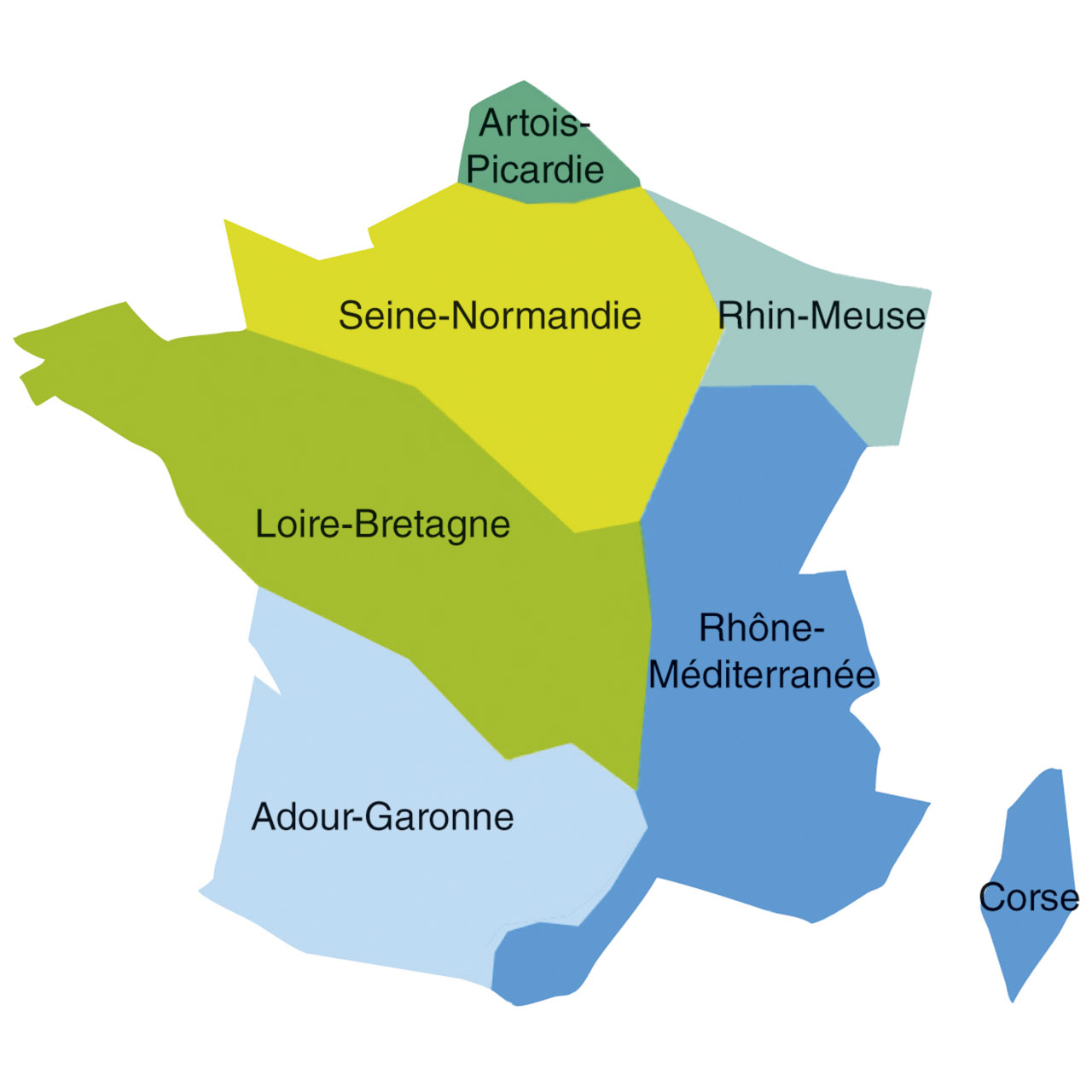 Carte des 7 bassins versants hydrographiques métropolitains – Agence de l’Eau