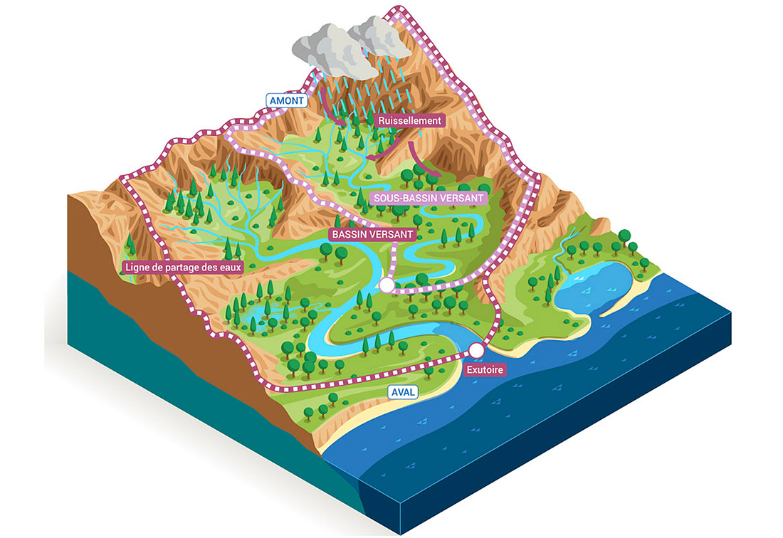 Un bassin versant est donc une réalité géographique et hydrologique qui va au-delà des limites administratives des communes ou des départements.