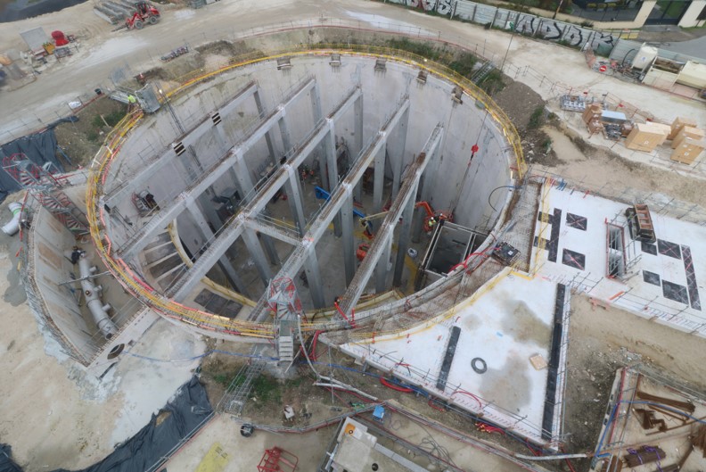 Dans un premier temps, les parois moulées du bassin ont été coulées en place. Épaisses de 80 cm, elles descendent jusqu’à 50 m de profondeur.