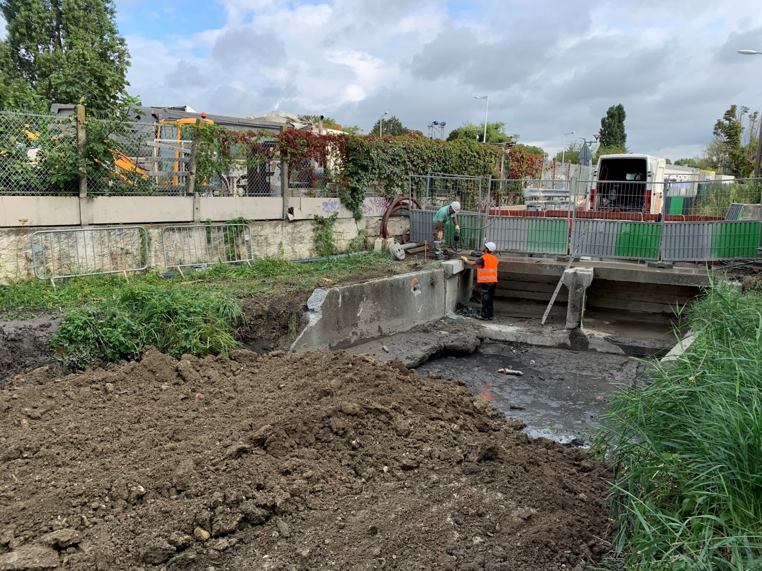 Le curage étant fini, la nouvelle phase du chantier a pu commencé en septembre 2021 avec les travaux de génie civil destinés à mettre en place un dégrilleur, un bassin de décantation et un by-pass.