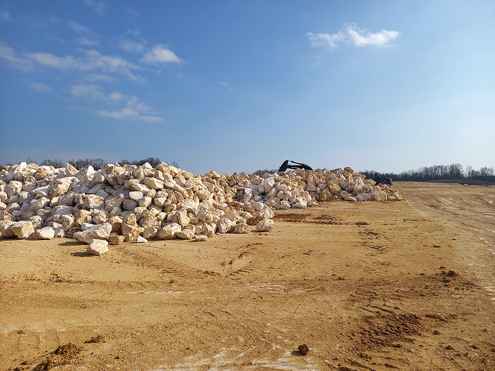Les blocs de calcaire utilisés pour l’enrochement proviennent de la carrière de Poigny, à proximité de Provins. Il s’agit de 6000 tonnes de roches mises en place pour conforter plus de 150 mètres linéaires de berges abîmées par l’érosion. Les berges ont également été adoucies, ce qui augmente la capacité de stockage des eaux pluviales du bassin. Elles sont ainsi optimisées pour prévenir les risques d’inondation.