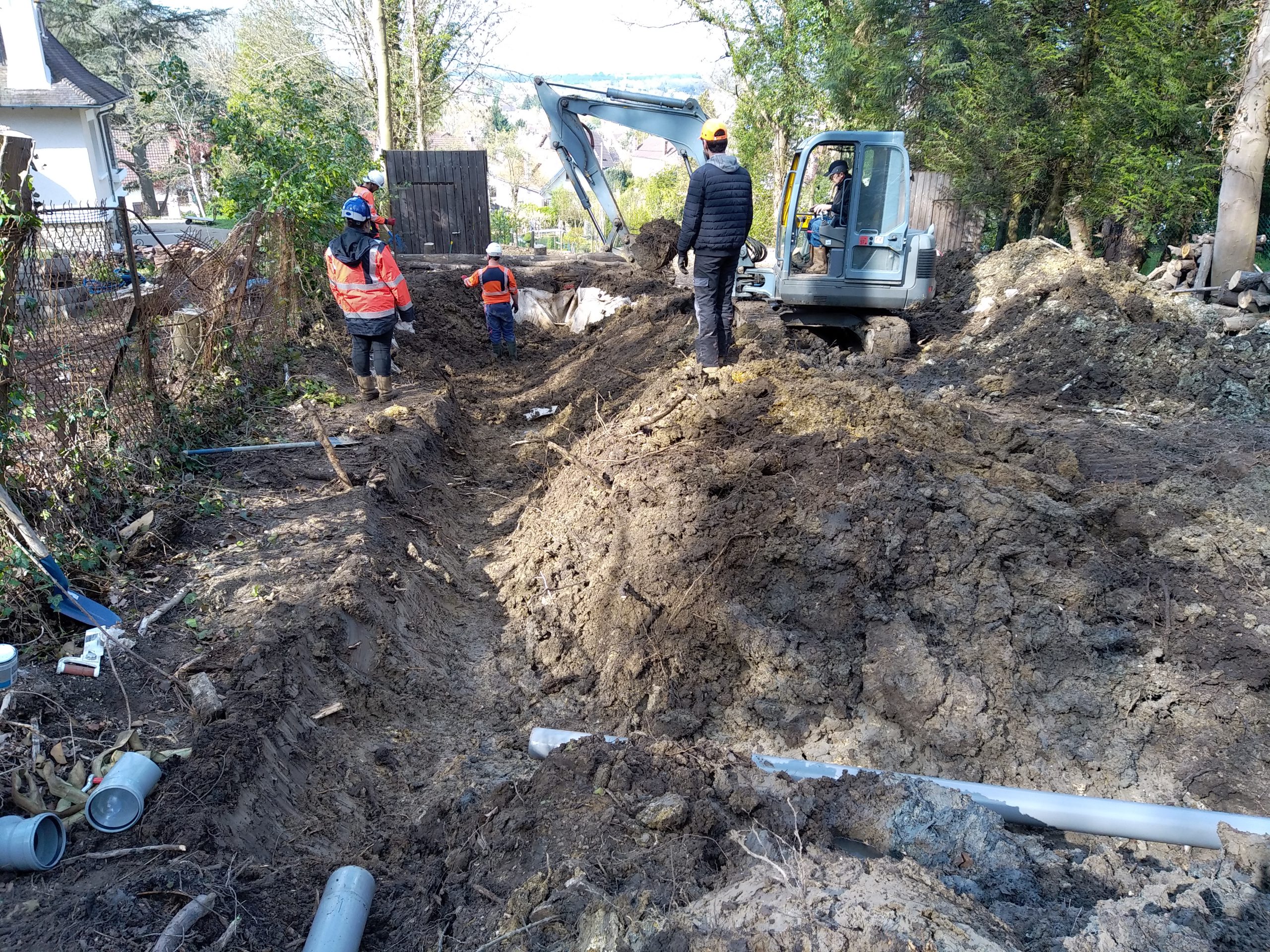 - Travaux de raccordement de la source des Courgents au réseau d’eaux pluviales de la rue du Haut Tertre, par l’entreprise FAYOLLE, du 10 au 14 mai 2021