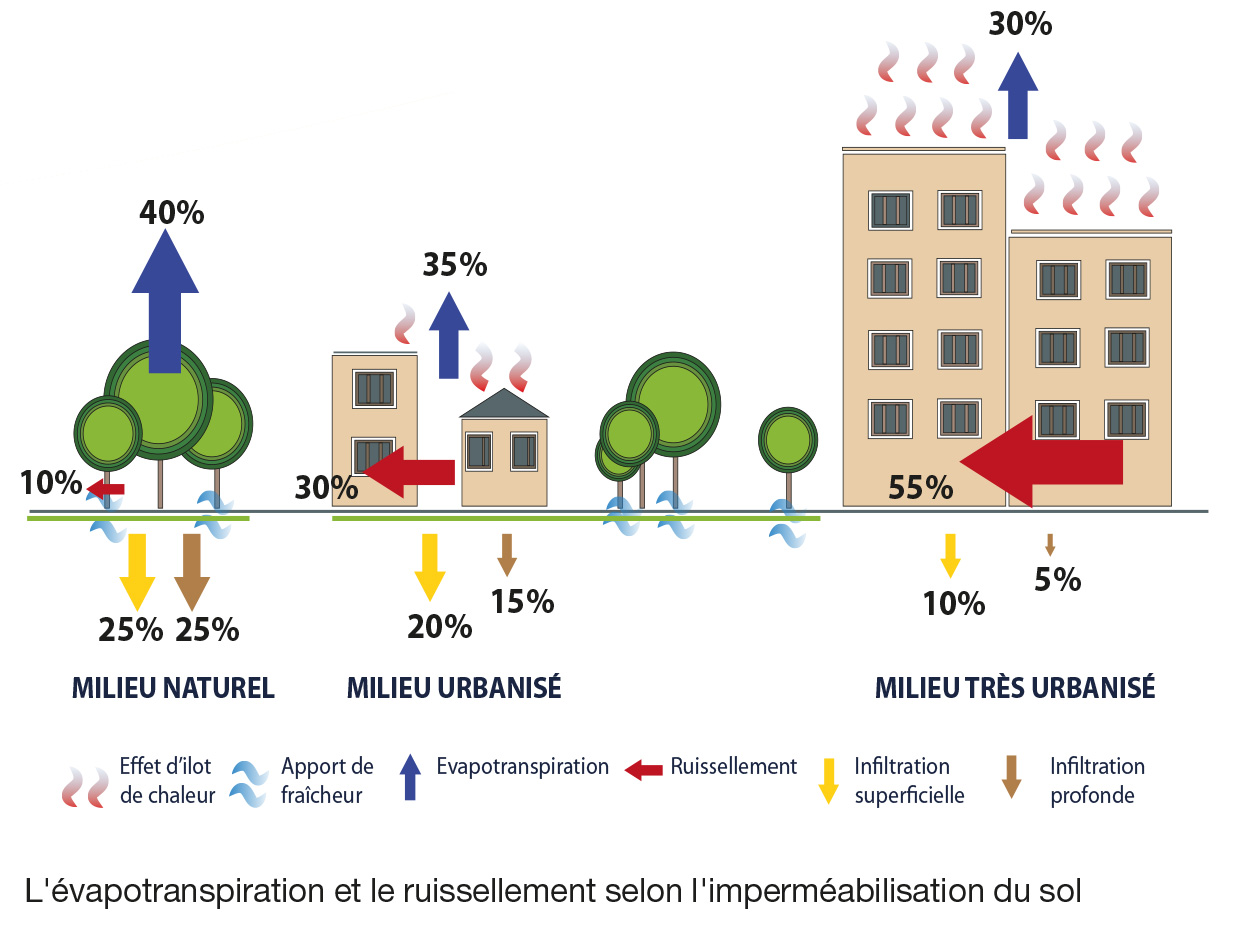 Aujourd’hui, la sur-urbanisation de nos villes accroît l’imperméabilisation des sols et cause des problèmes d’inondation. De plus, d’éventuels déficits en alimentation des nappes, rendent difficile la gestion des eaux pluviales.