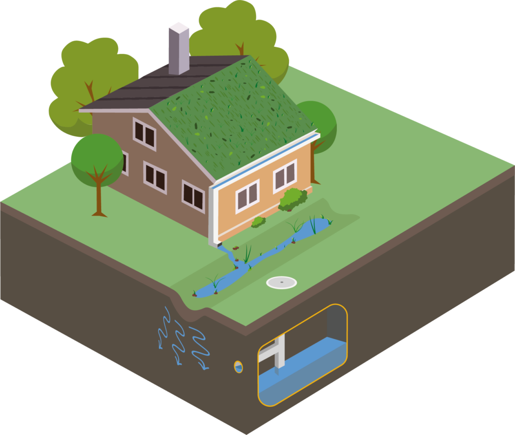 - restituer l’eau de pluie au sol et recharger les nappes phréatiques.